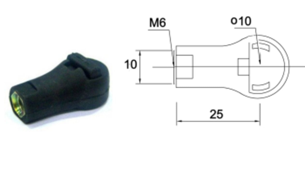 10MM P/Cup Blk 25MM Cen M6X1 Pls-19