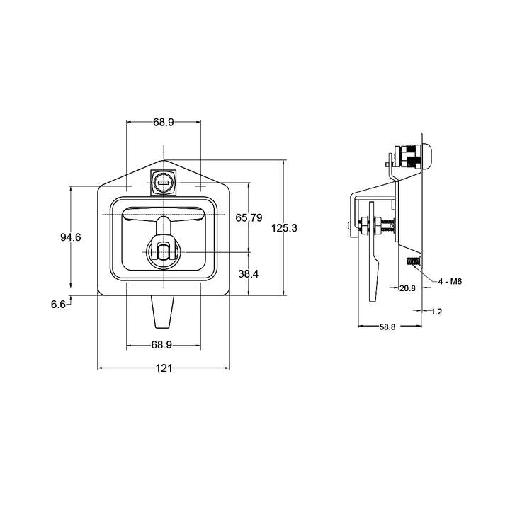 Classic drop T lock, Ideal for cabinets, truck and trailer toolboxes, and various containers.